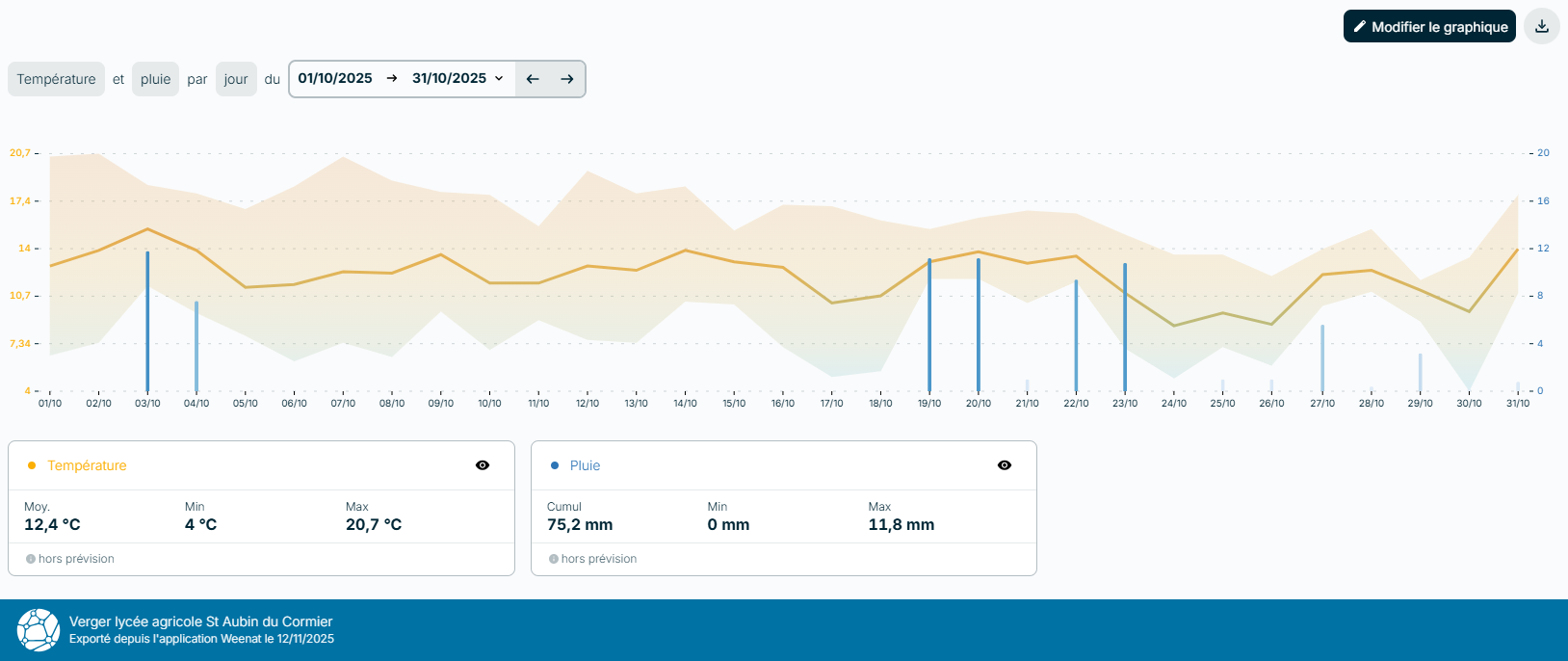Retrouvez les graphiques issus des données relevées par notre station météo